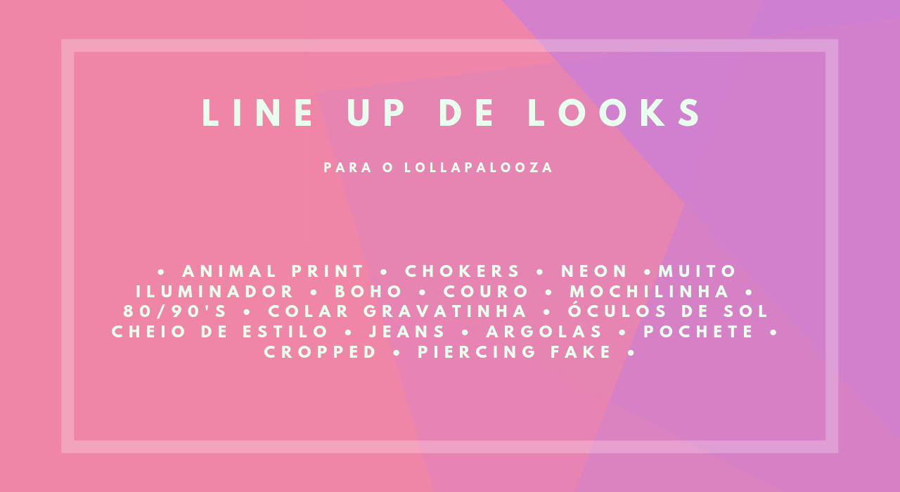 Um dos nossos festivais mais queridinho está chegando! O Lollapalooza acontecerá no dia 05, 06 e 07 de abril no Autódromo de Interlagos, em São Paulo! E para ajudar a quem vai no festival e ainda não decidiu seu look, ou quem só quer ficar por dentro das tendências de moda, a Milliá junto com os seus parceiros – Julia de Moraes Make Up, que também foi nossa produtora de moda, Quote Clothing, Saltô e a Mint Óptica-, separou 6 outfits super confortáveis para você arrasar no festival! E é claro, que de quebra, daremos algumas dicas para você ter a melhor experiência possível durante o evento!